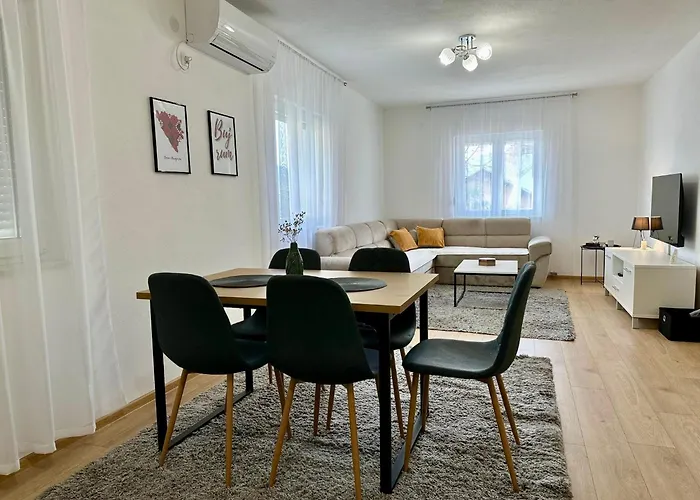 يمكن للضيوف أثناء إقامتهم في Emos Apartment موستار بمساحة 70 مترًا مربعًا الاسترخاء على الشرفة على بعد 1.3 كم من الجسر القديم.